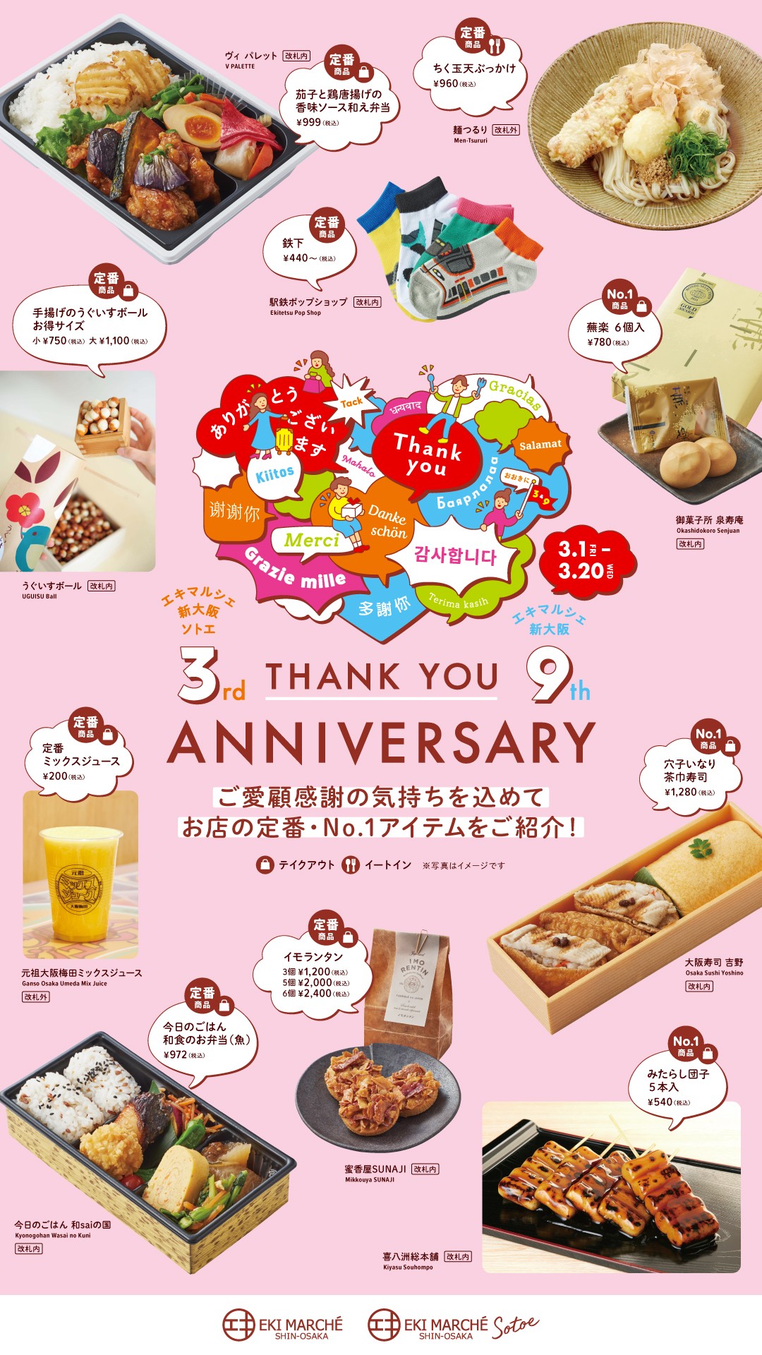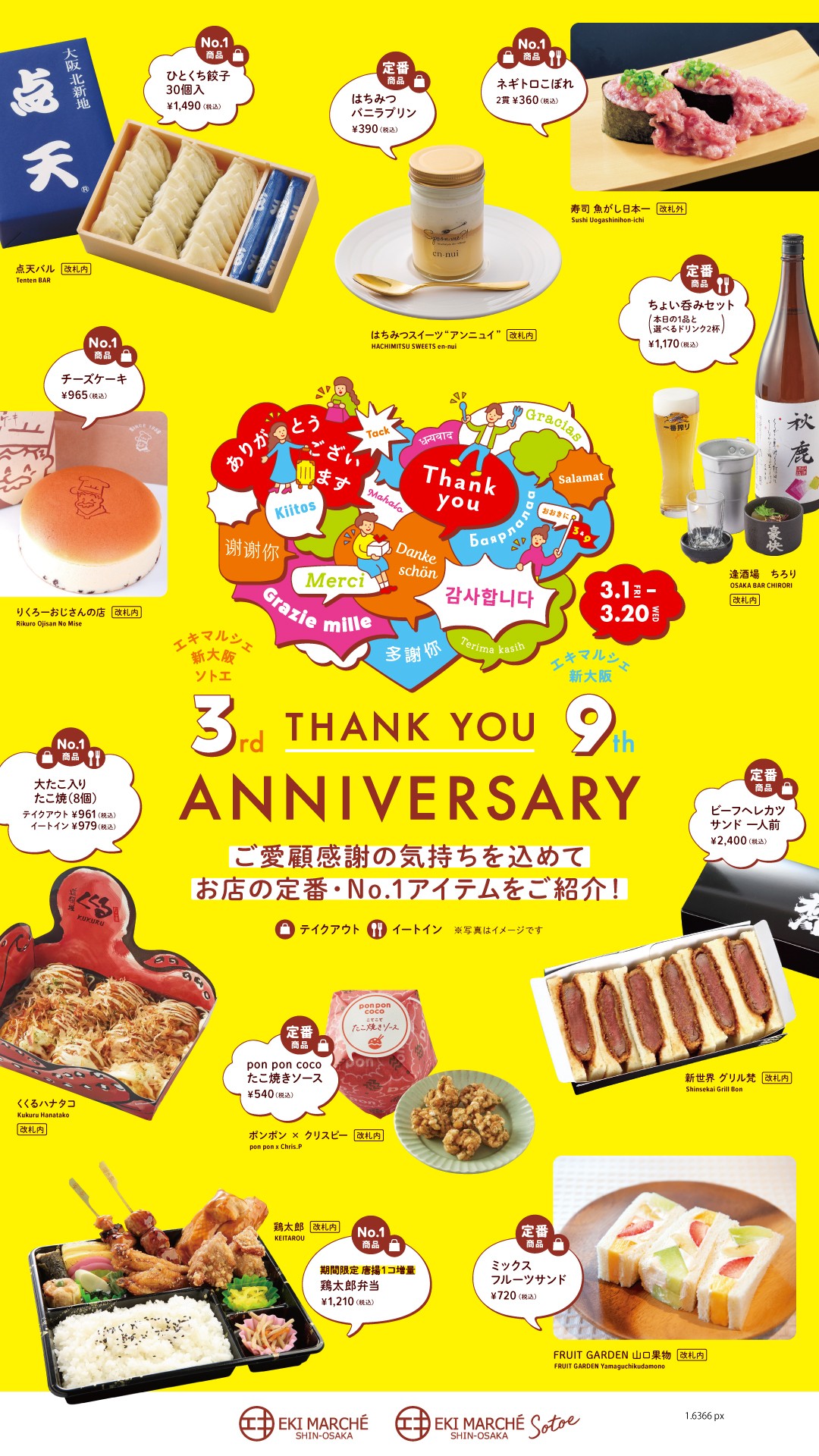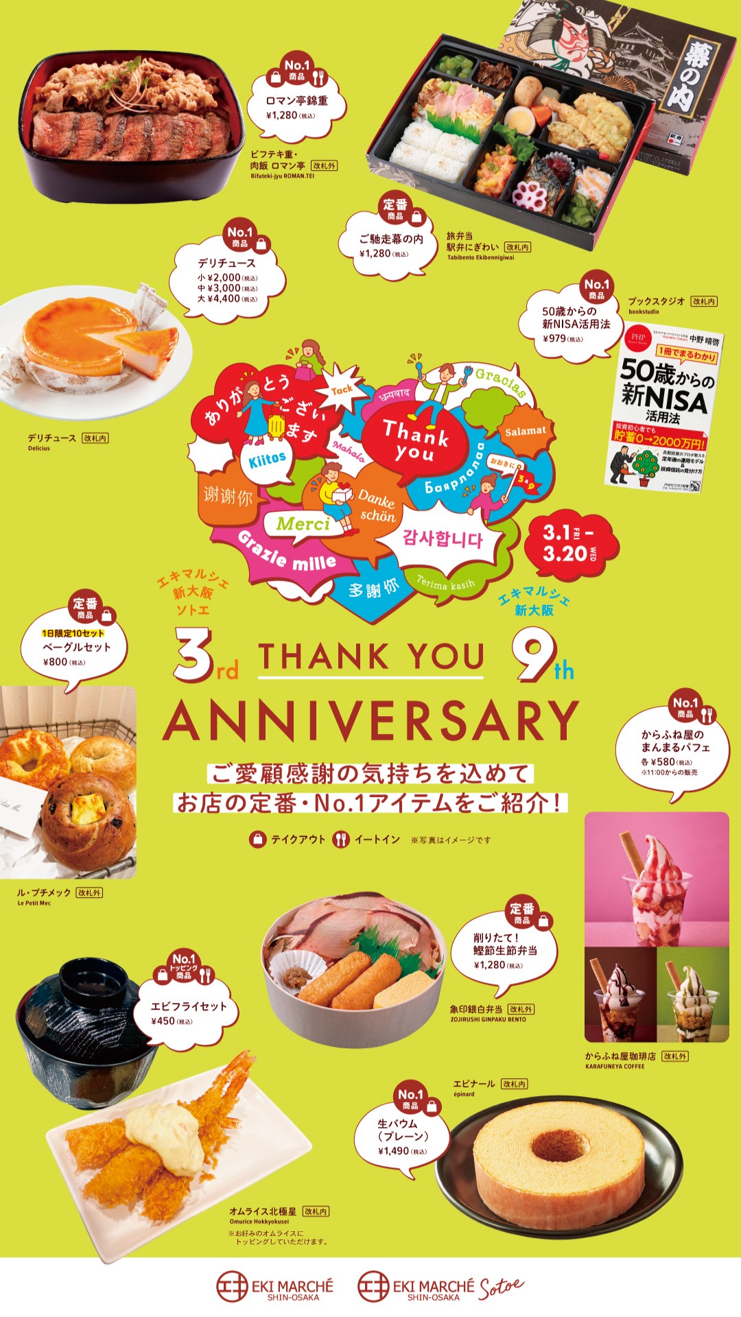 eki marche Shin-Osaka le neuvième anniversaire, Shin-Osaka Sotoe changent un article ayant de la faveur cela le troisième anniversaire et introduisent !